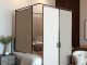- Drzwi przesuwne, umożliwiające pełne odgrodzenie stref bez zajmowania miejsca na otwarcie.